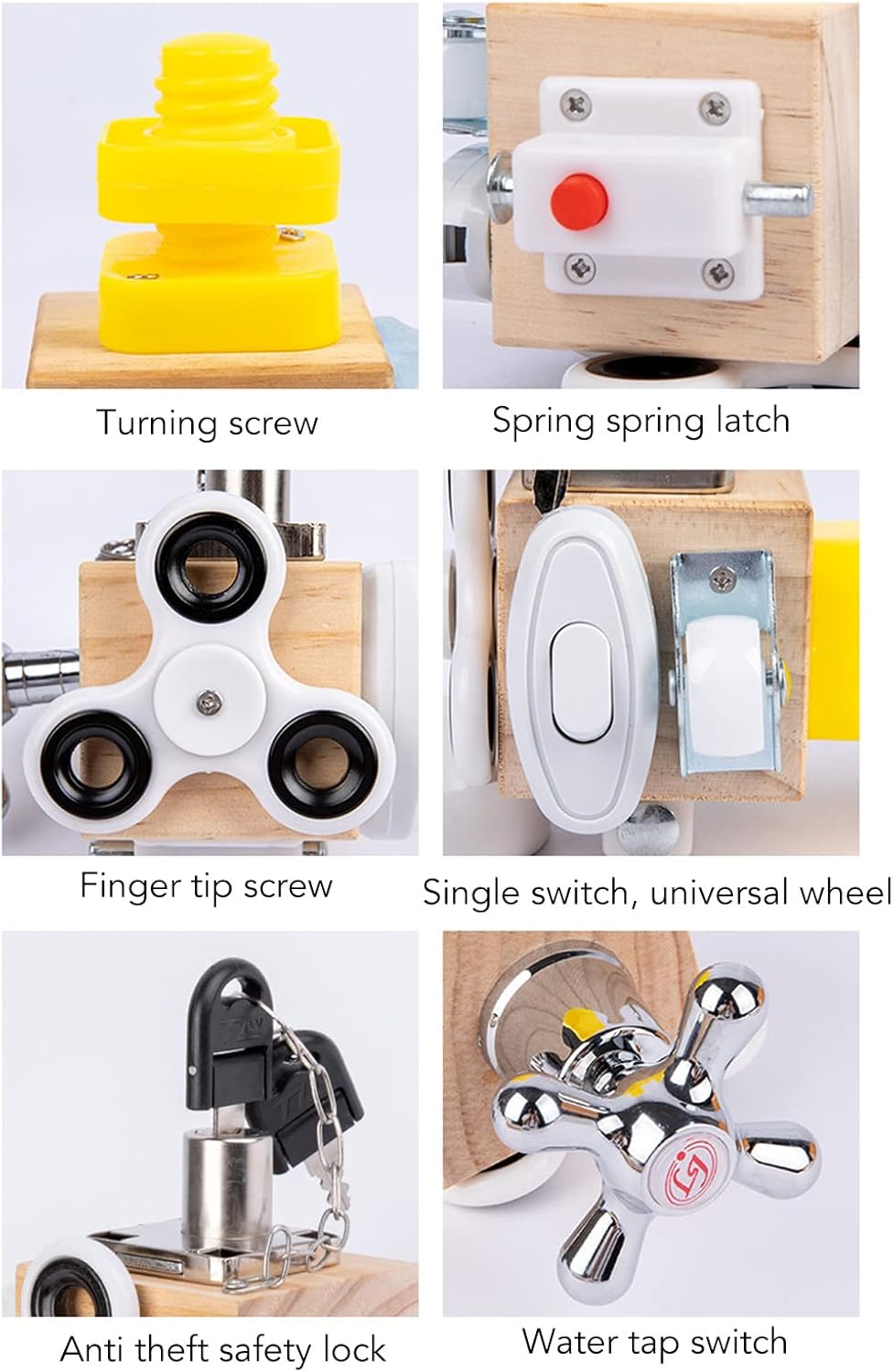 ✔️ Leert vaardigheden voor het echte leven – Bevat sloten, schakelaars, knoppen, schroeven en meer om alledaagse taken na te bootsen.